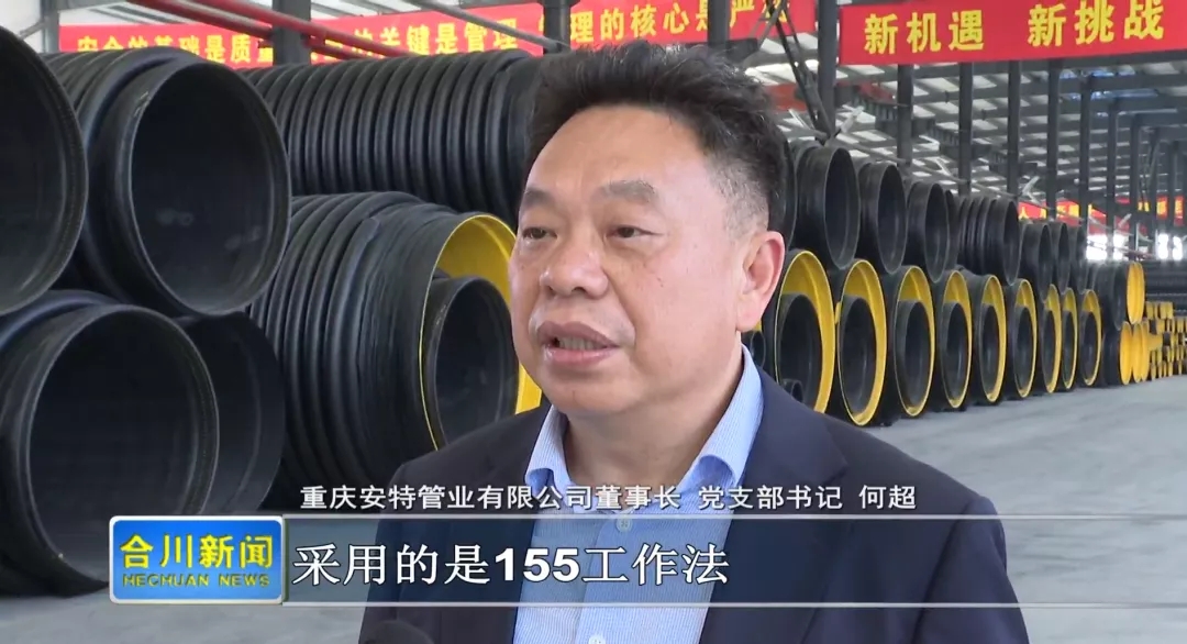 安特管業(yè)很榮幸再次受邀接受合川電視臺采訪,安特管業(yè)董事長兼黨支部書記何超同志在接受采訪時提出我公司抓黨建采用的是155工作法。